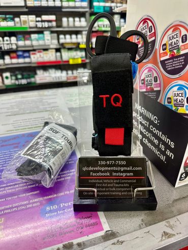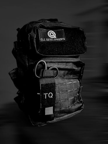 Close-up of a Honda ATV with a tactical pouch labeled 'TQ'.